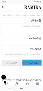 پس از انجام ویرایش، گزینه بروزرسانی مشخصات را بزنید تا اطلاعات ثبت گردد.